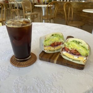 저희 카페는 브런치 전문점이라는 거, 다들 아시죠? 샌드위치 속 재료 하나하나 신선한 걸로 엄선해서 사용하고, 샐러드 채소도 매일 아침 시장에서 직접 골라온답니다. 특히 햄치즈 샌드위치는 남녀노소 누구나 좋아하는 메뉴라 자신 있게 추천드릴 수 있어요. 든든하게 배 채우고 싶을 땐 치킨텐더 랩도 좋아요!